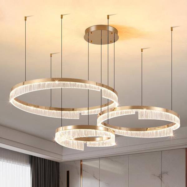 The acrylic led pendant light lamp body is carefully crafted using hardware electroplating technology, with a smooth and attractive surface and full of modern texture. Each component is hand-forged to ensure a strong and durable structure. The seamless welding process ensures the cleanliness and wear resistance of the lamps, and has excellent rust resistance.