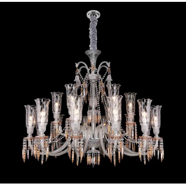 Commercial chandeliers are large lighting fixtures designed for spacious spaces such as hotel lobbies, ballrooms and corporate headquarters. Combining aesthetic elegance with powerful functionality, these large scale commercial chandeliers are often made from materials such as crystal, glass and premium metals in a variety of finishes, including gold and chrome. Equipped with multiple light sources, they provide ample illumination while acting as a dramatic focal point. The modern designs incorporate energy-efficient LED technology and customizable options to match the decor and scale of any commercial environment. These large scale commercial chandeliers embody luxury and sophistication, enhancing the ambiance and prestige of any large, high-ceiling space.