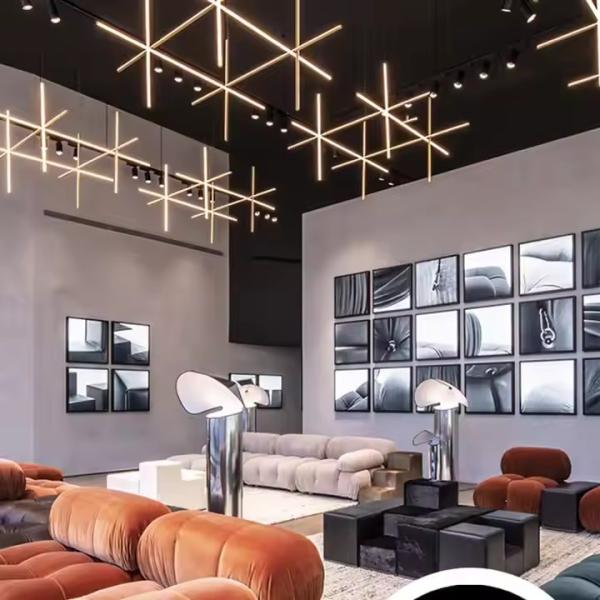 Adjustable Height LED Linear Pendant Light Chandelier For Customized Office Hotel Art Decorative Tube Ceiling Lighting Images |