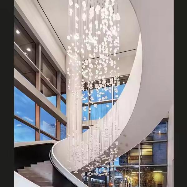 Large Glass Stone Light Luxury Art Custom Chandeliers For Hotel Stair Hanging Lamp Images |