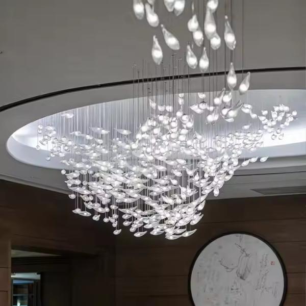 Custom Hotel Lobby Decorated Chandeliers Hanging Pendent Lamp Shopping Mall Villa Living Room LED Light Fish Shaped Glass Images |