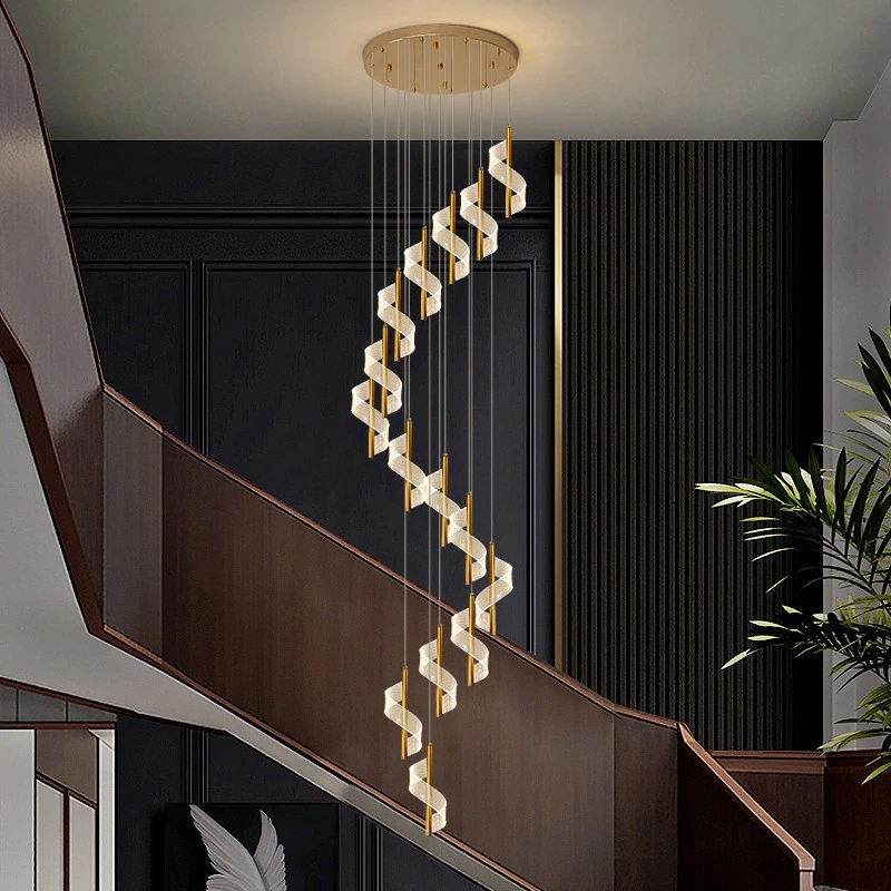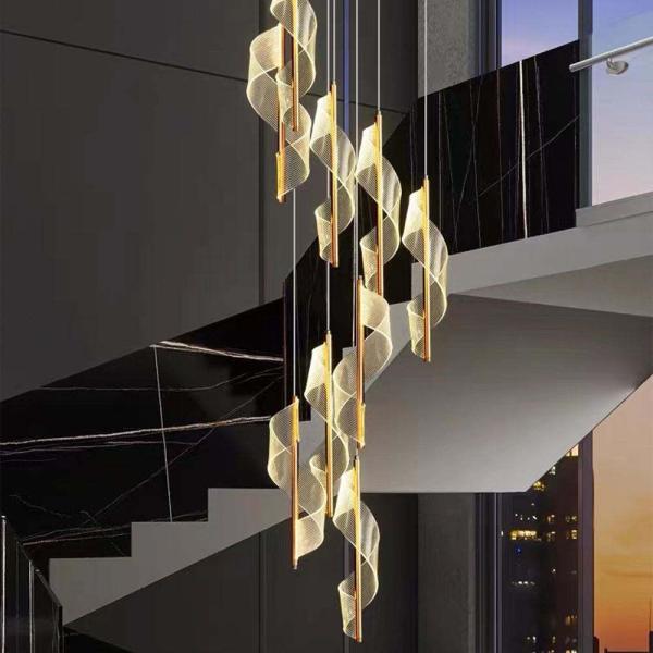 Modern Staircase Giant Spiral Chandeliers Hotel Rotating Chandelier Duplex Loft Stairs Led Pendant Light Images |