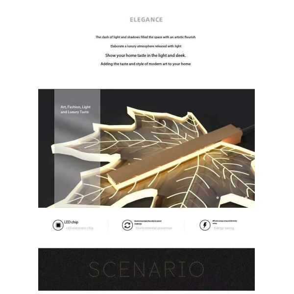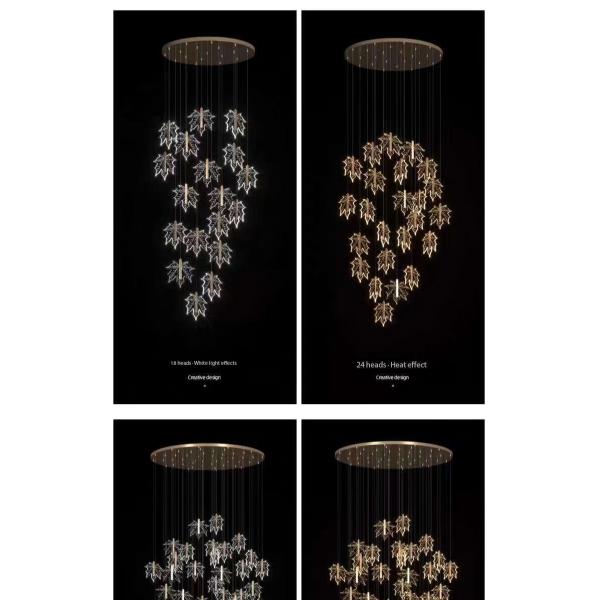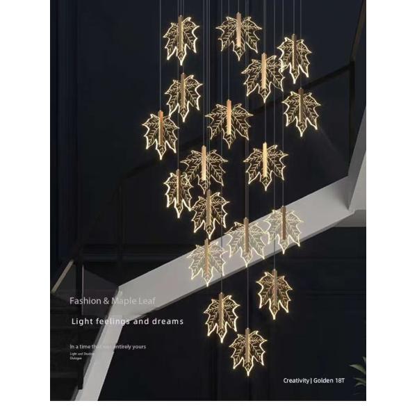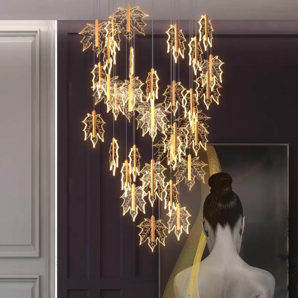 Modern Led Simple Art Leaf Acrylic Chandelier Gold Home Hotel Staircase Dining Decorate Pendant Light Images |