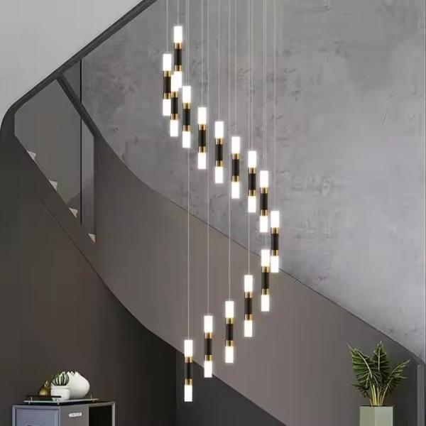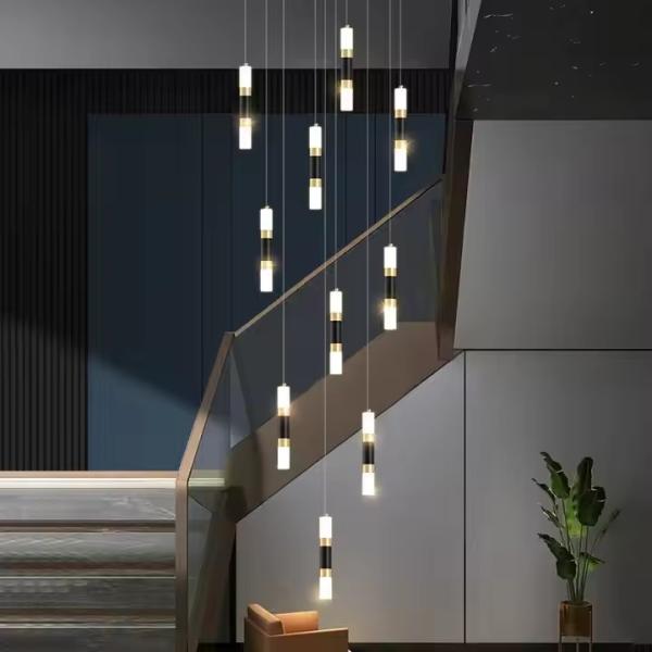 Indoor Living Room Staircase Modern High Ceiling Chandelier with Dimmable Aluminum Acrylic LED Lights Images |